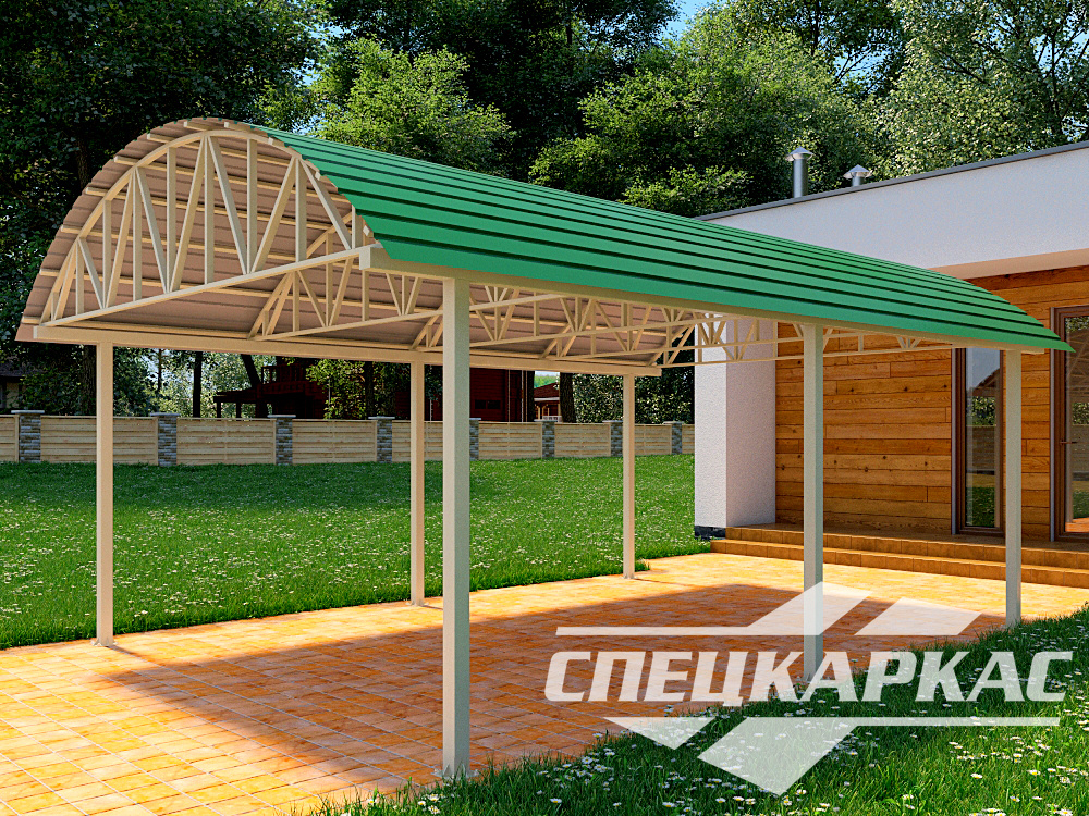 Навесы из профнастила с жёстким каркасом из профильных труб — купить на заказ у завода «Спецкаркас» по цене от 87 тыс. руб.! В стоимость включена доставка и установка под ключ. Изготовим по вашему размеру за 1-3 дня.